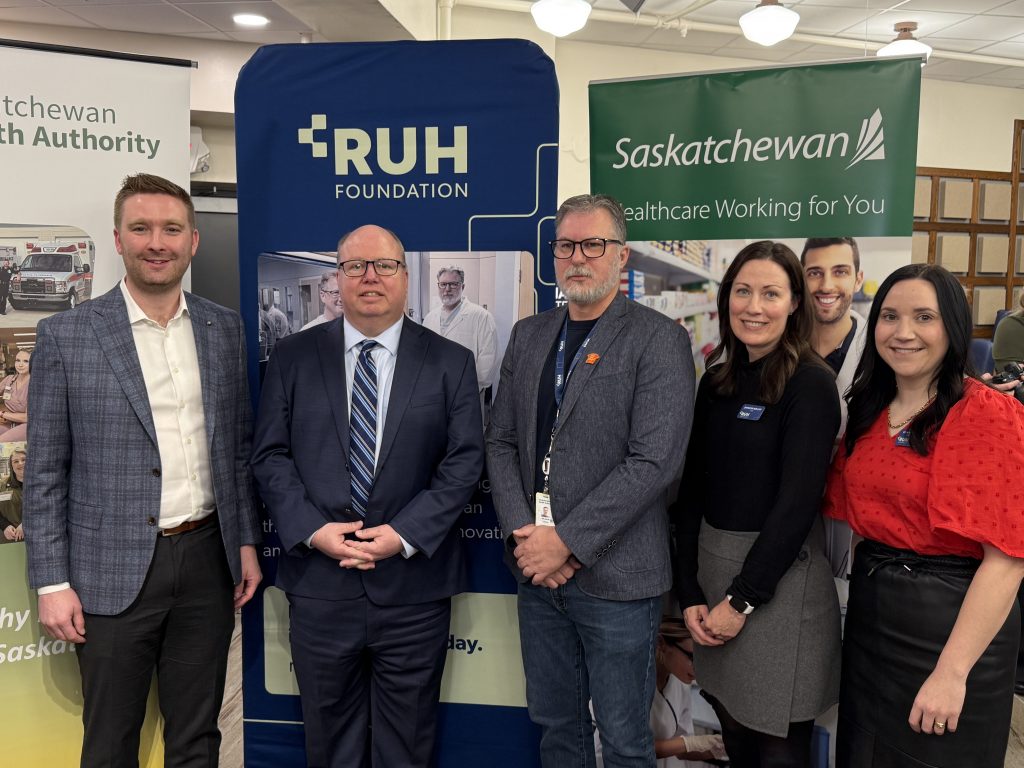 (l-r) Honourable Jeremy Cockrill, MLA for the Battlefords and Saskatchewan’s Minister of Health; Andrew Will, Chief Executive Officer of the Saskatchewan Health Authority; Dr. Jason Orvold, Cardiologist and Division Head of Cardiology; Jennifer Molloy, RUH Foundation CEO; Erin Eccleston, RUH Foundation Board Chair.
